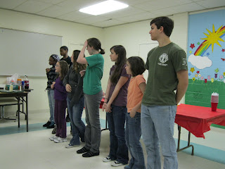 Mrs. Bailey instructs the officers in their duties and the club lines up.
